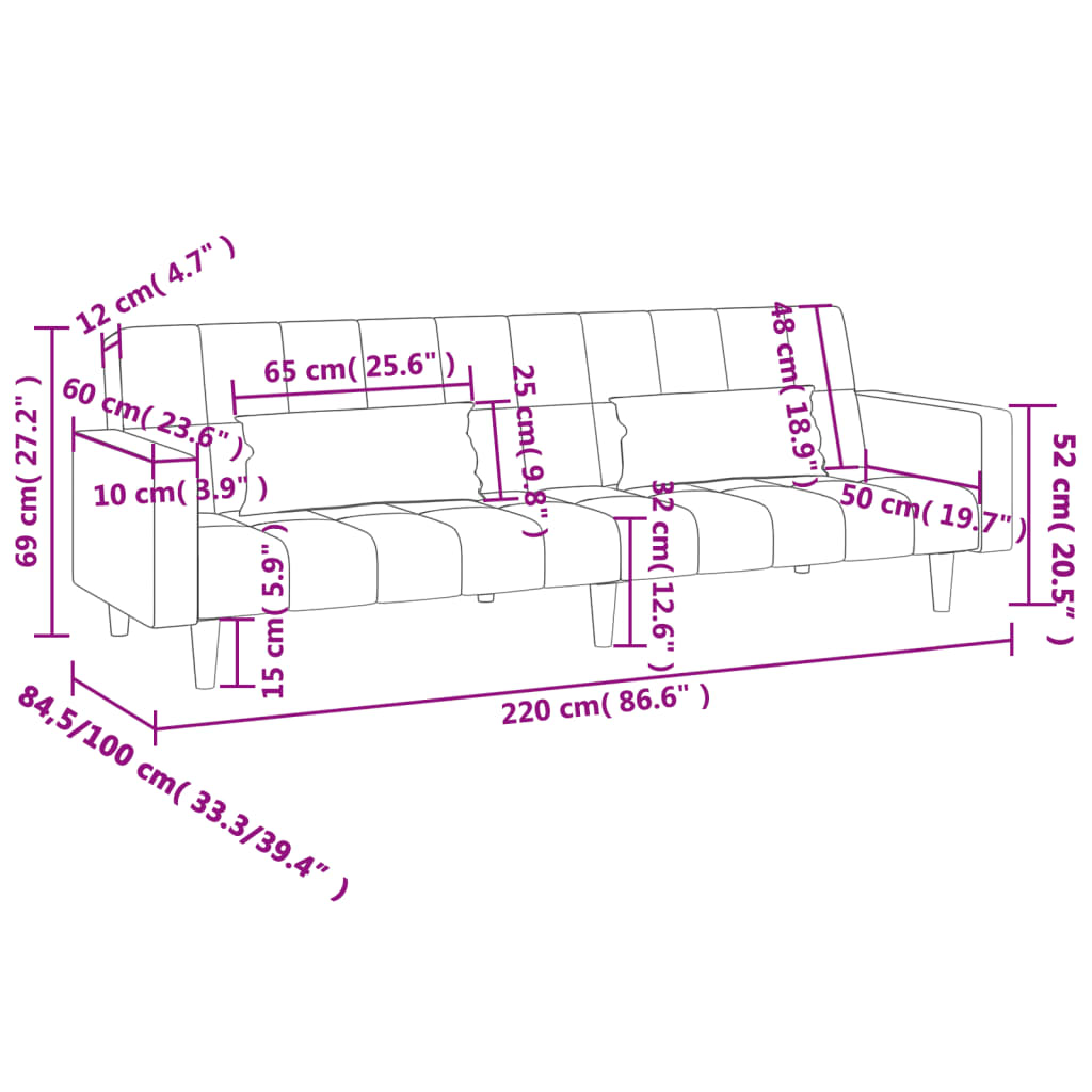 Krevet (kad je razvučen):Ukupne dimenzije: 220 x 100 x 52 cm (D x Š x V) – Veličina jastuka: 65 x 25 cm (D x Š)